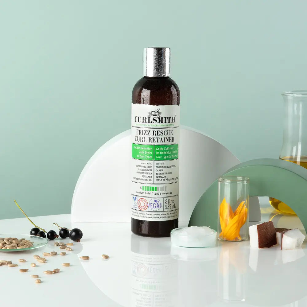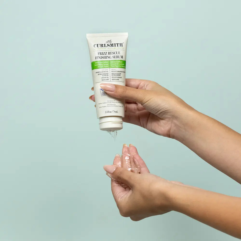 Einzigartiges Öl-Gel-Serum, das als Finishing-Produkt verwendet wird, um Frizz zu bändigen und dem Haar Glanz und Form zu geben.