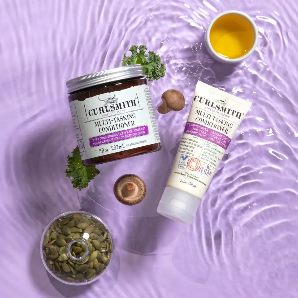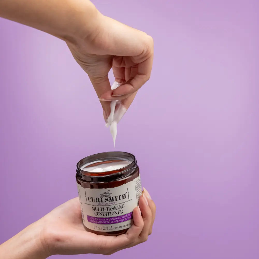 Wenn Sie sich nicht sicher sind, wie viel Protein Ihr Haar braucht, oder wenn Sie einfach nur durch das große Angebot an Produkten für lockiges Haar verwirrt sind – wir sind hier, um Ihnen zu helfen. Wir haben unseren Multi-Tasking-Conditioner so entwickelt, dass er eine leichte Textur hat, aber mit feuchtigkeitsspendenden Inhaltsstoffen vollgepackt ist, so dass er je nach Anwendung als Spülung, Tiefenpflege oder Leave-in-Conditioner benutzt werden kann. Außerdem ist er mit Proteinen angereichert, die das Haar stärken und Haarbruch vorbeugen. Damit ist er das ultimative Produkt, um zu experimentieren und die perfekte Protein-Feuchtigkeits-Balance für Ihr Haar herauszufinden.